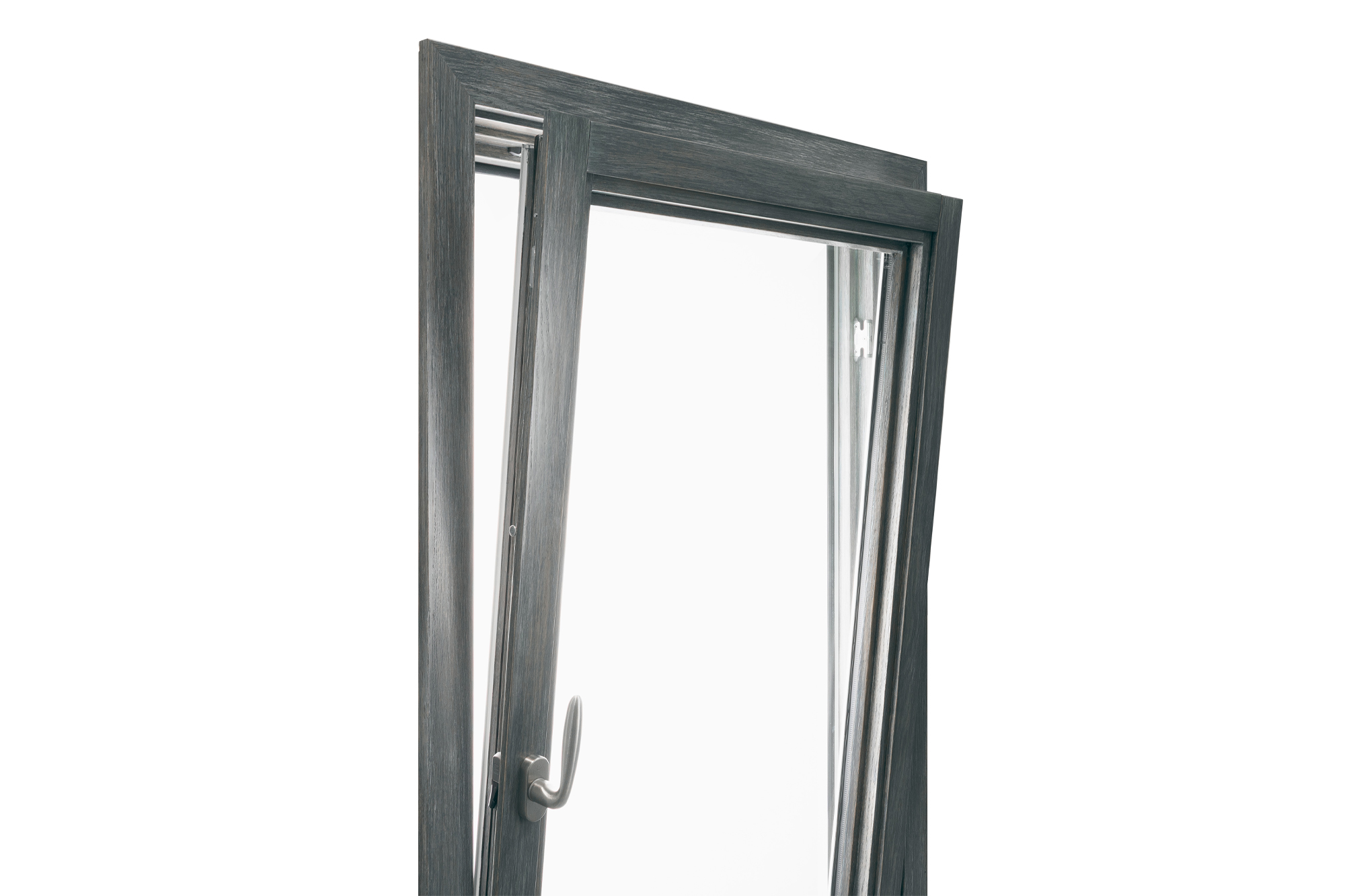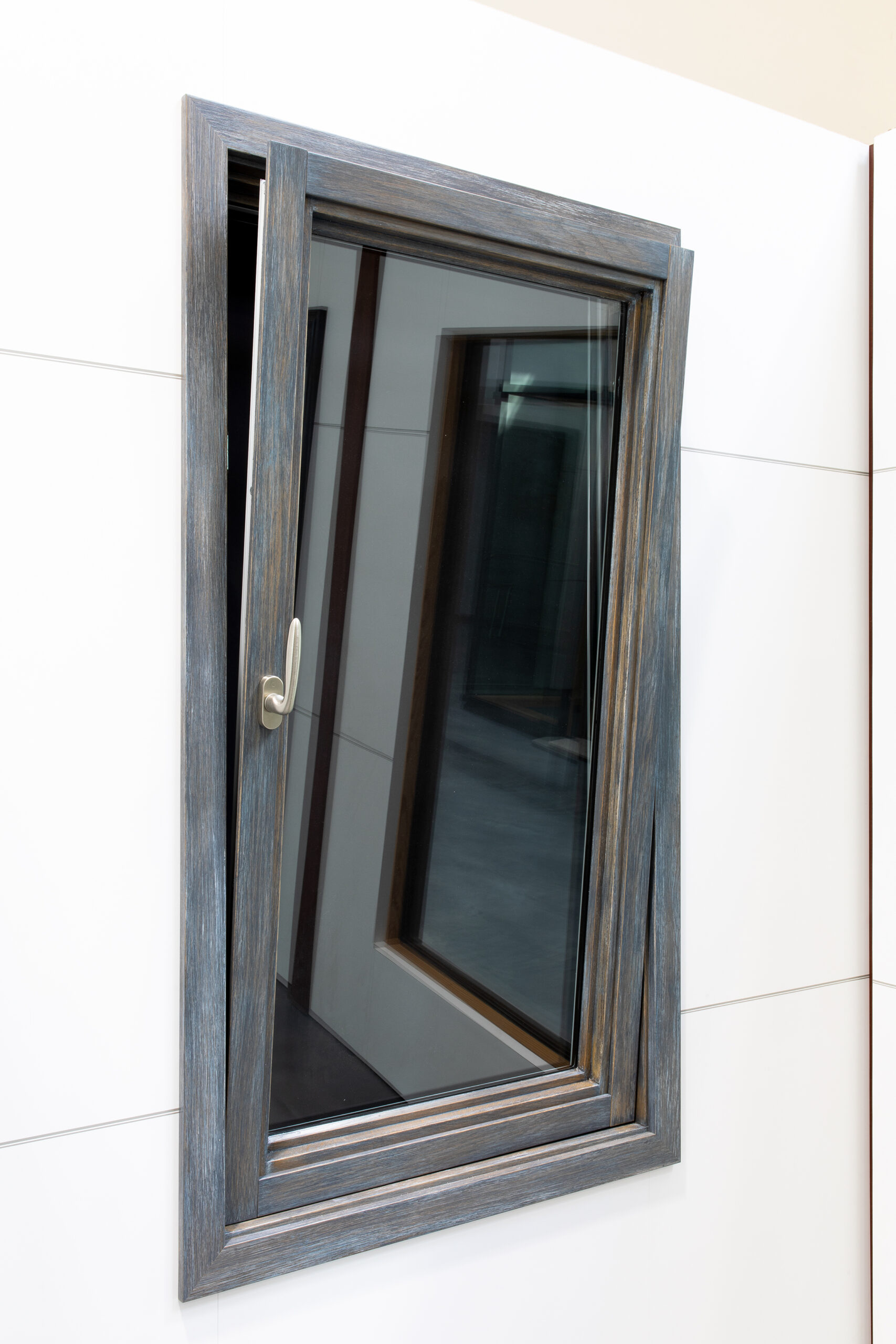 Loewen Tilt & Turn windows offer two separate opening functions with a single handle. Rotating the handle 90 degrees will open the system as an inswing casement, rotating the handle an additional 90 degrees opens the system as an inward tilting hopper for safe, gentle ventilation.